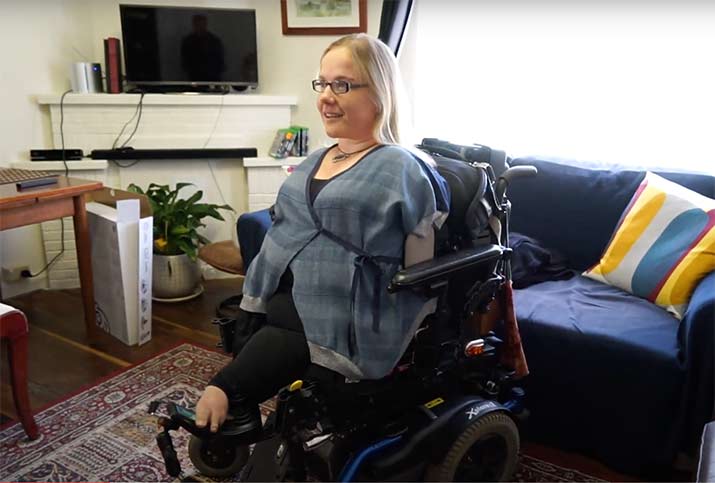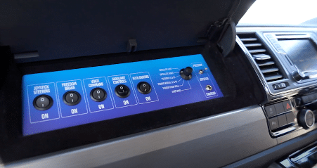 To drive – steer, accelerate and brake – Ame uses the Fadiel Joystick Control with her toes, and operates functions like the indicators using Voice Command.